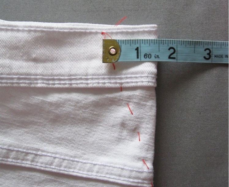 - folosiți ace pentru a marca cât trebuie îndepărtat (dacă este ușor îngustat în partea de jos, ar trebui să îl ajustați doar pe o parte);