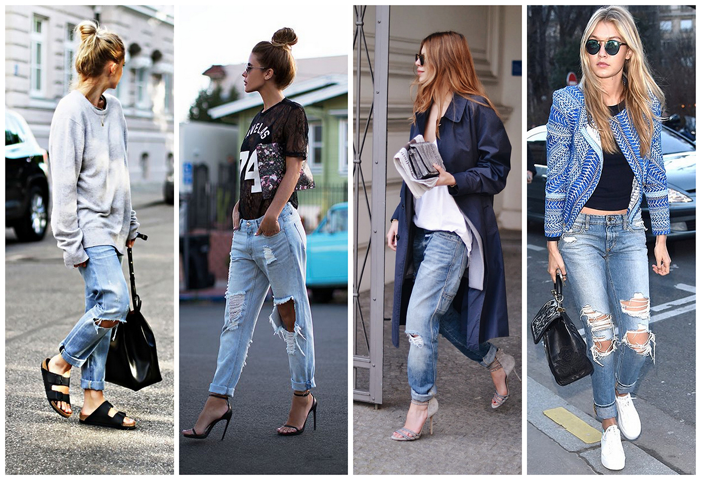 Designerii folosesc în mod activ toate modelele cunoscute de pantaloni din denim pentru creativitate, transformându-i în blugi rupți. Acest lucru face ca tendința să fie universală, unde fiecare fată va găsi o croială pe gustul ei care să-i sublinieze cel mai bine trăsăturile siluetei.