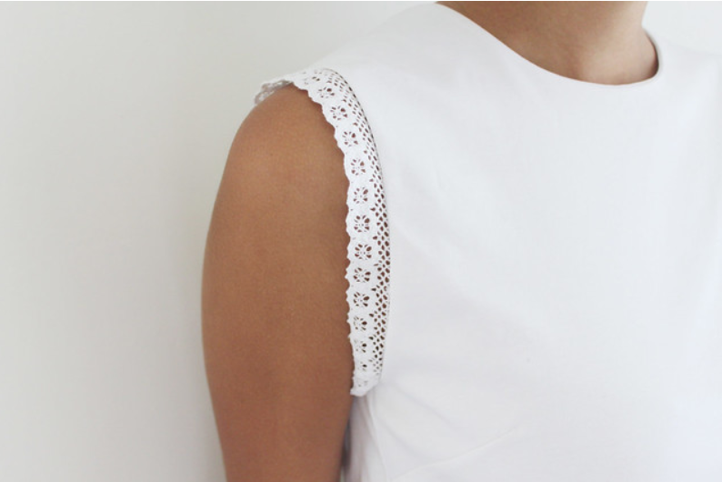 Mânecile din dantelă arată feminin și romantic. Materialul din dantelă se poate asorta sau contrasta cu culoarea produsului. Se cusă manual sau la mașină, folosind un punct tricotat.
