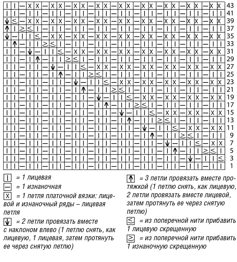 Nuanțe atunci când lucrați cu raftul din stânga: pentru mărimea 38, buclele evidențiate cu gri pe diagramă sunt tricotate cu suprafața frontală.