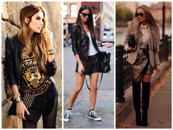 Un look interesant pentru o fată în stil rocker este o rochie sau o fustă pufoasă cu o jachetă de motociclist din piele, completată de colanți groși și cizme de polizor.