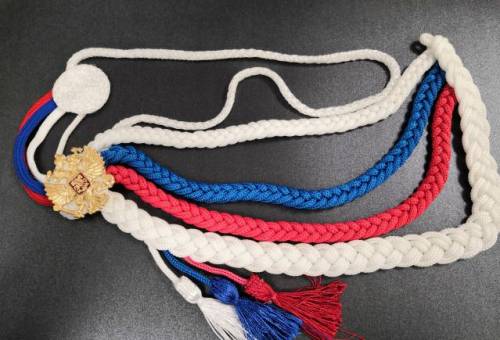 - Personalul de comandă poartă un produs sub forma unui șnur dublu auriu cu vârfuri pereche.