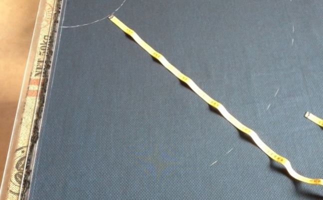 Acum piesele trebuie decupate și așezate pe material. Pentru a economisi material, este mai bine să tăiați fustele semi-soare în două bucăți. Piesele sunt așezate în diagonală, din colțurile materialului. Partea centrală a elementului trebuie să fie situată la un unghi de 45 de grade.